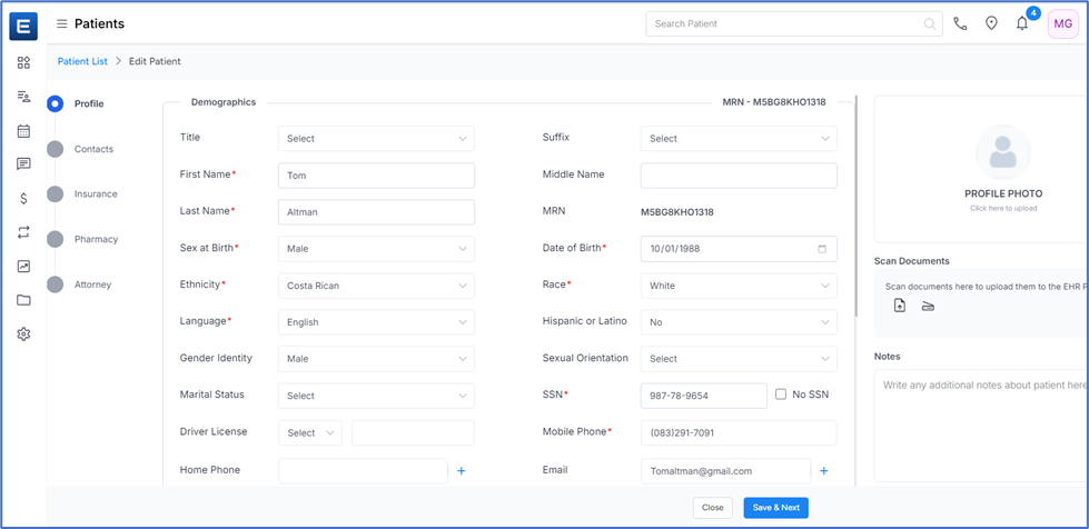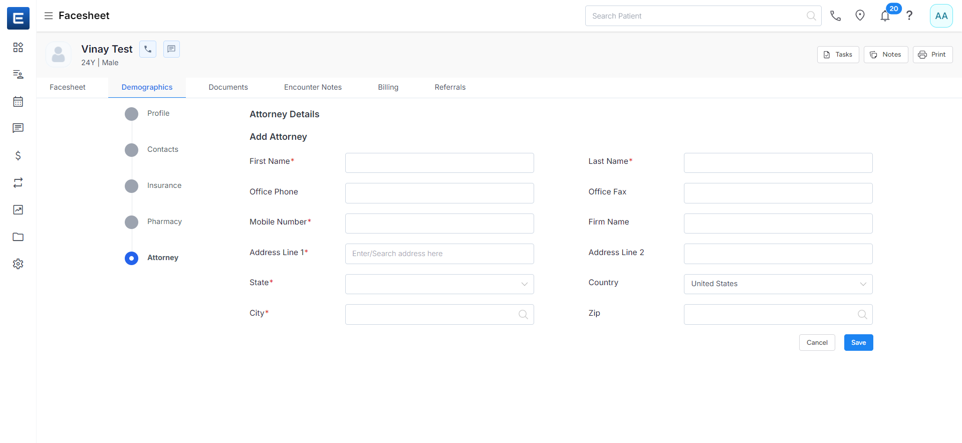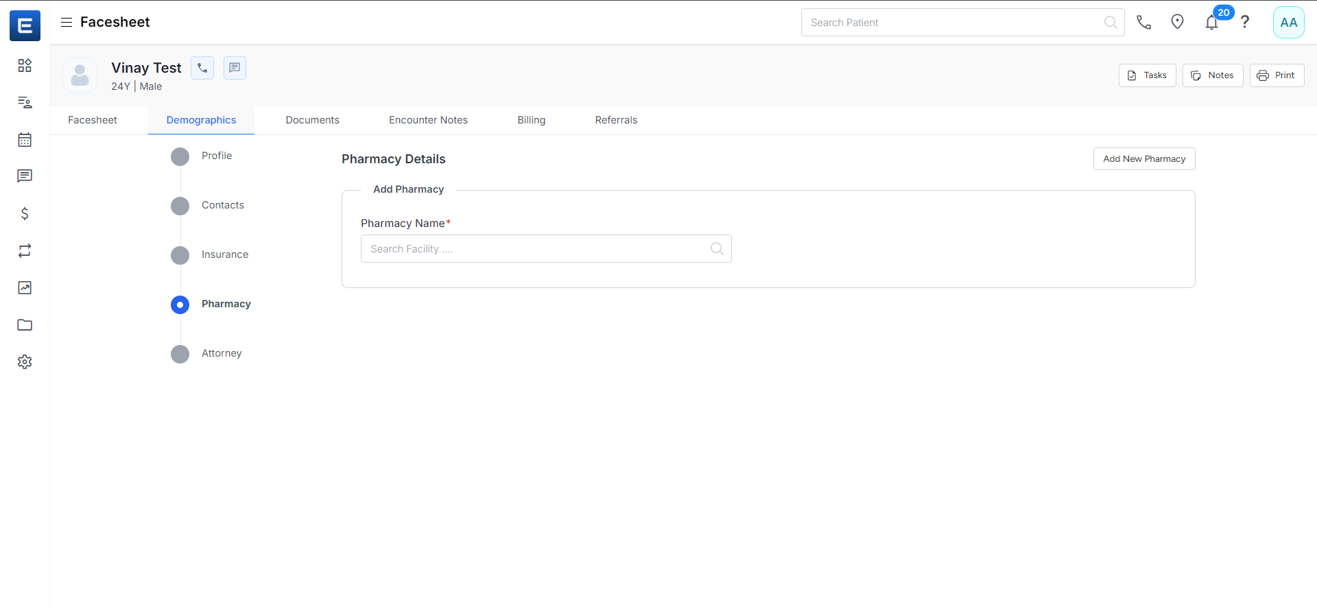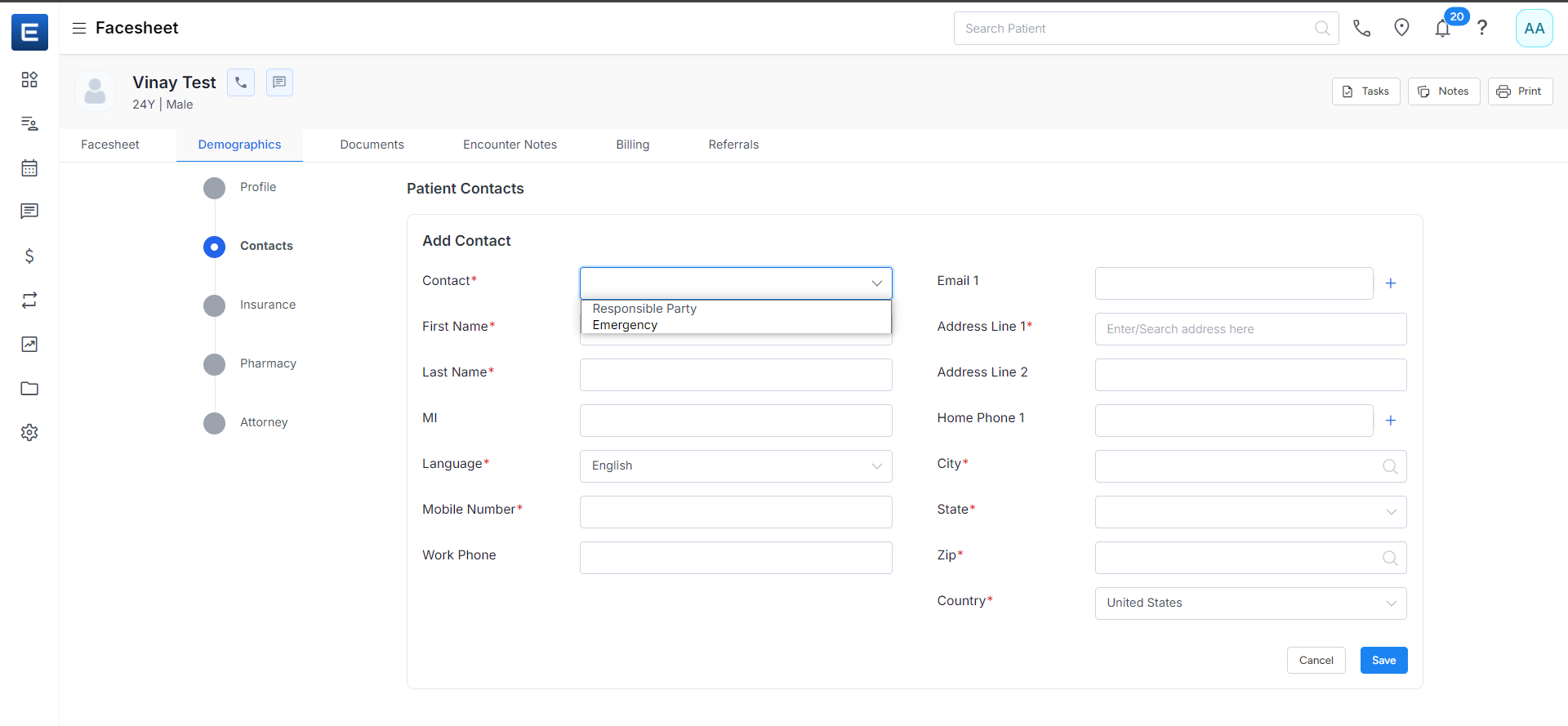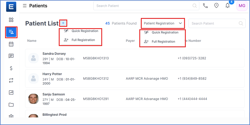 - Click on the "Patient Registration" dropdown menu or the + sign