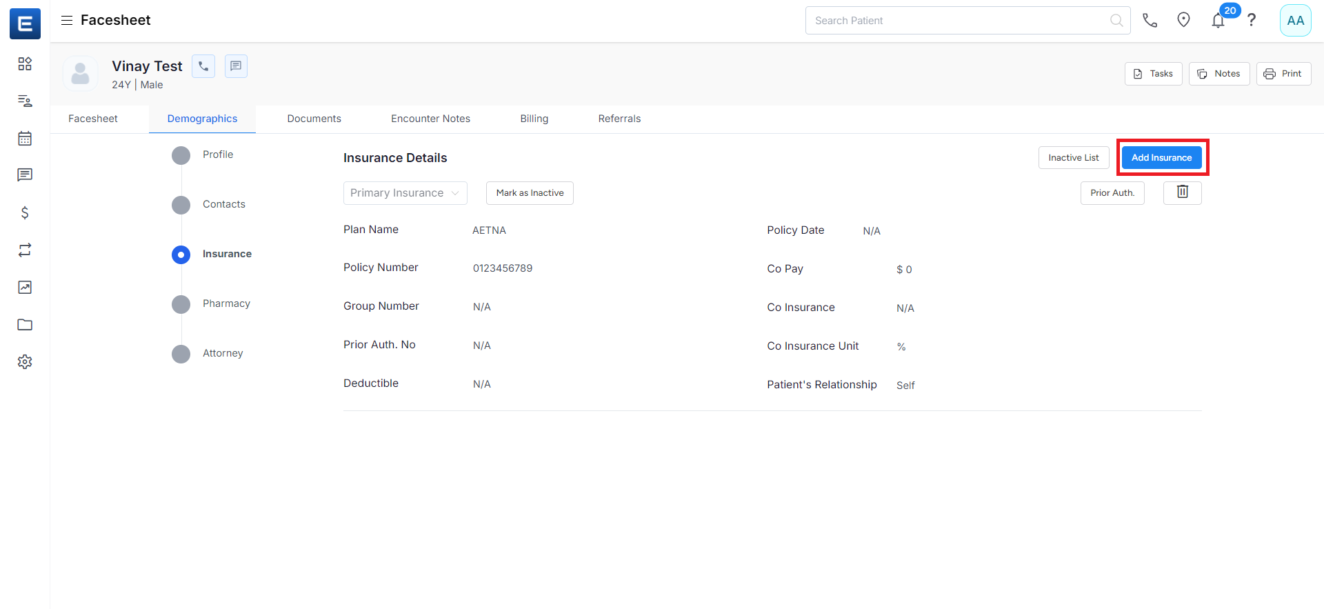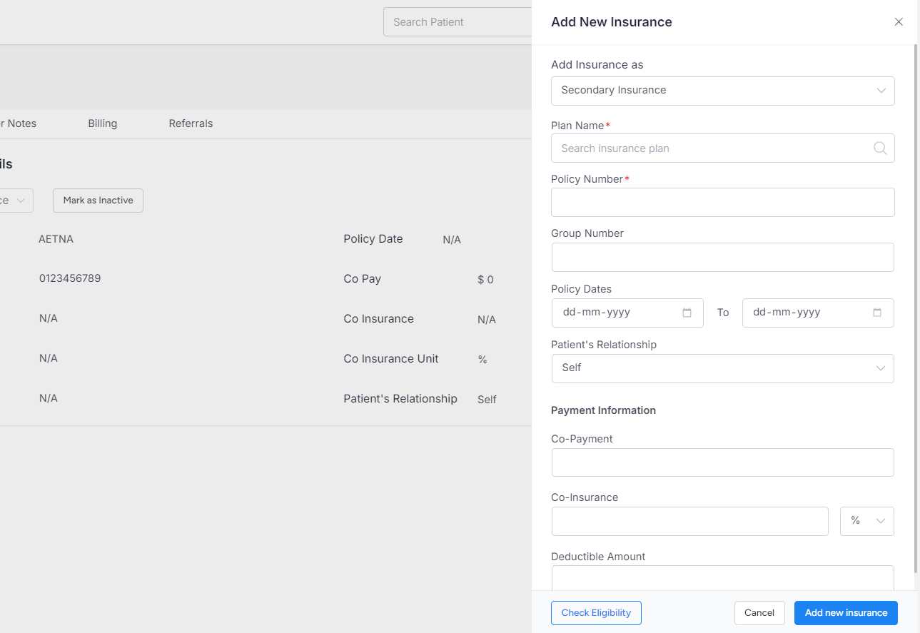 - Click the "Check Eligibility" button to verify the patient's insurance coverage.